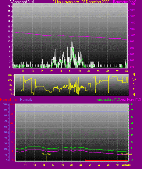 Maximum windspeed = 3.0 kts from 09 °( N ) on day 30 at time 07:15