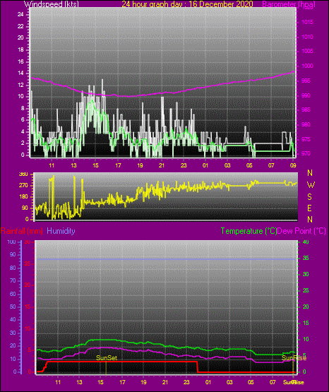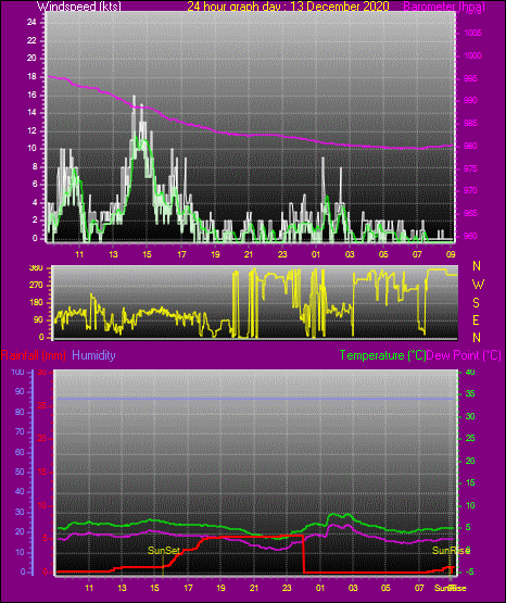 Maximum windspeed = 12.0 kts from 110°(ESE) on day 13 at time 14:17